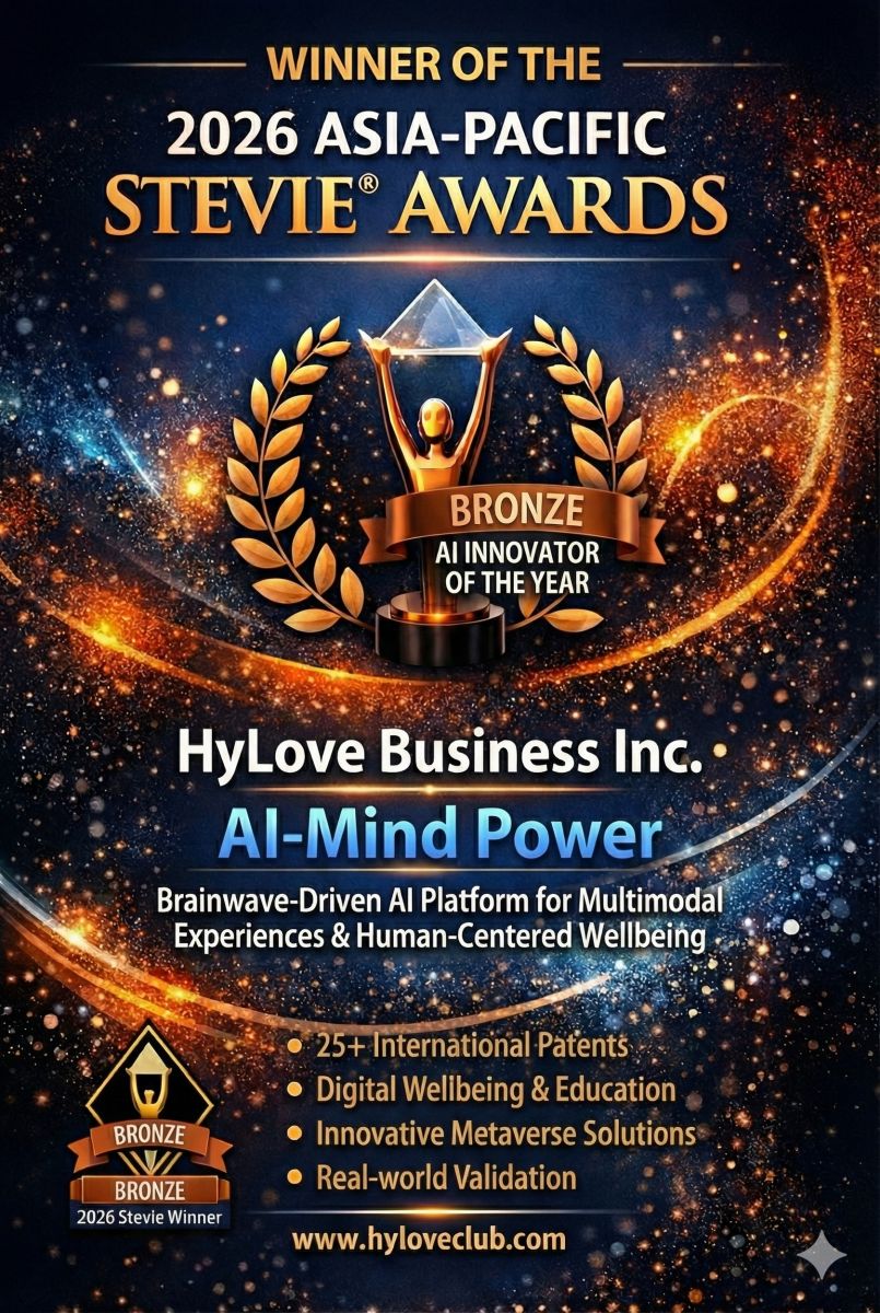 HyLove Business Inc. won the Asia-Pacific Stevie® Awards "AI Innovator of the Year – Bronze" in 2026, recognizing its outstanding contributions to the integration of artificial intelligence and brainwave technology in its innovative platform AI-Mind Power (the only winner from Taiwan).